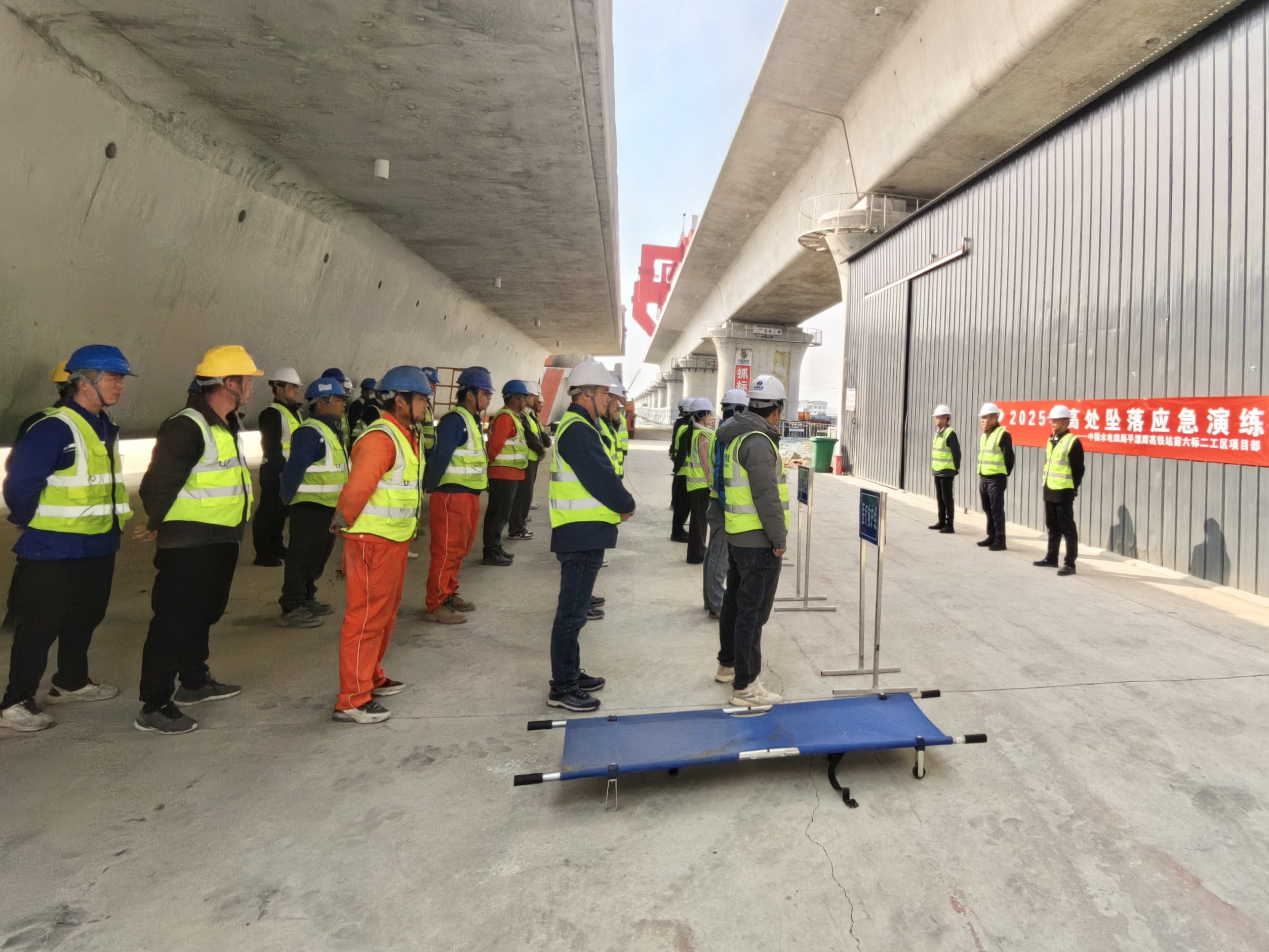 為強化高空作業安全風險防控能力,提升應對突發事故的應急處置水平,確保箱梁架設施工安全有序推進。10月15日,平漯周高鐵項目組織開展高空作業實戰化應急演練,項目管理人員、施工班組及應急救援隊伍共40余人參與。 ?本次演練模擬箱梁架設過程中突發的高空作業險情:一名施工人員在距地面10米的高空作業平臺進行箱梁架設時,因安全帶意外脫落不慎墜落至墩身上的防護平臺,導致腿部骨折;同時,現場一臺起重設備突發故障,致使另一名作業人員受困于高空作業吊籃。安全網格員發現險情后,立即向項目部指揮中心報告??傊笓]部迅速啟動高空作業應急預案,技術評估組、高空救援組、設備搶修組、醫療救護組、安全警戒組及通訊保障組同步響應,趕赴現場展開救援。 該演練多場景模擬實戰,全流程檢驗應急處置能力。圍繞“險情上報、應急響應、高空救援、傷員救治、設備搶修、現場管控”四大環節展開:技術評估組第一時間對現場結構穩定性、設備故障原因及潛在風險進行研判,劃定警戒區域,防止次生事故發生。高空救援組利用升降平臺和防墜器抵達受困人員位置,固定傷員并轉移至地面;醫療組對骨折傷員進行夾板固定、止血包扎,隨即送往定點醫院。?設備搶修與恢復?:設備搶修組排查起重設備故障原因,快速修復控制系統,確保設備安全復位。安全警戒組疏散無關人員并封鎖現場,通訊組全程保障指令暢通,演練結束后召開復盤會優化流程。各小組緊密配合,嚴格按照《高處作業安全規范》及預案要求操作,在30分鐘內完成險情處置,有效驗證了應急預案的可行性與救援隊伍的實戰能力。 以練促防,強化高空作業安全防線?。為保障演練實效,項目部提前編制專項方案,組織3次實地預演,重點磨合高空救援技術、設備操作及多組協同流程,并對安全繩、防墜器、救援擔架等器材進行全方位檢查。參演人員通過反復訓練,熟練掌握高空救援要點及急救技能,確保演練安全與效果“雙達標”。 本次演練全面檢驗了項目部高空作業應急管理體系與快速處置能力,尤其在高風險救援、多部門聯動及技術研判等方面積累了寶貴經驗。下一步,項目部將嚴格落實《高空作業安全管理十條硬措施》,持續開展安全教育培訓,定期維護救援設備,優化“云端監控+人工巡檢”雙重防控機制,切實保障施工人員生命安全,為平漯周高鐵項目高質量建設保駕護航。 ? |
