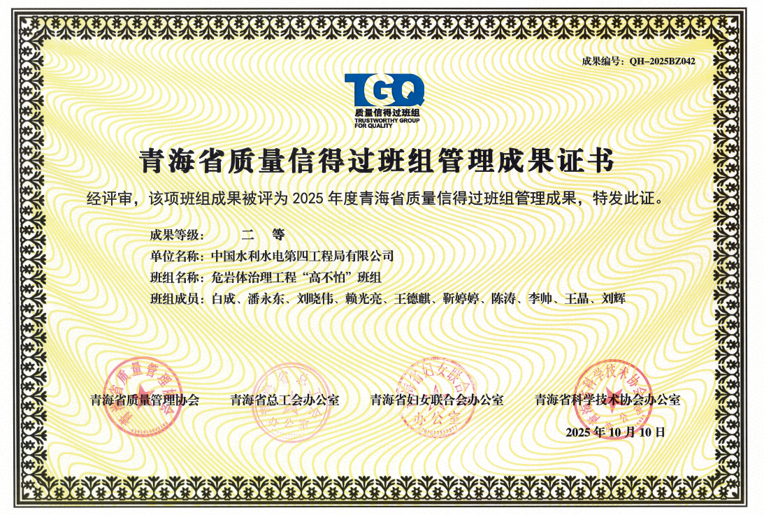 危巖體治理工程“高不怕”班組榮獲青海省質量信得過班組二等獎 |